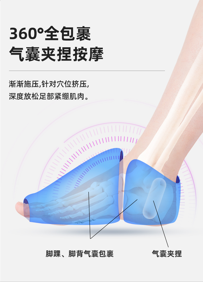 腳底 滾輪按壓(腳趾)、刮痧(腳底)、頂(腳后跟)按摩 (多模式,多強度)