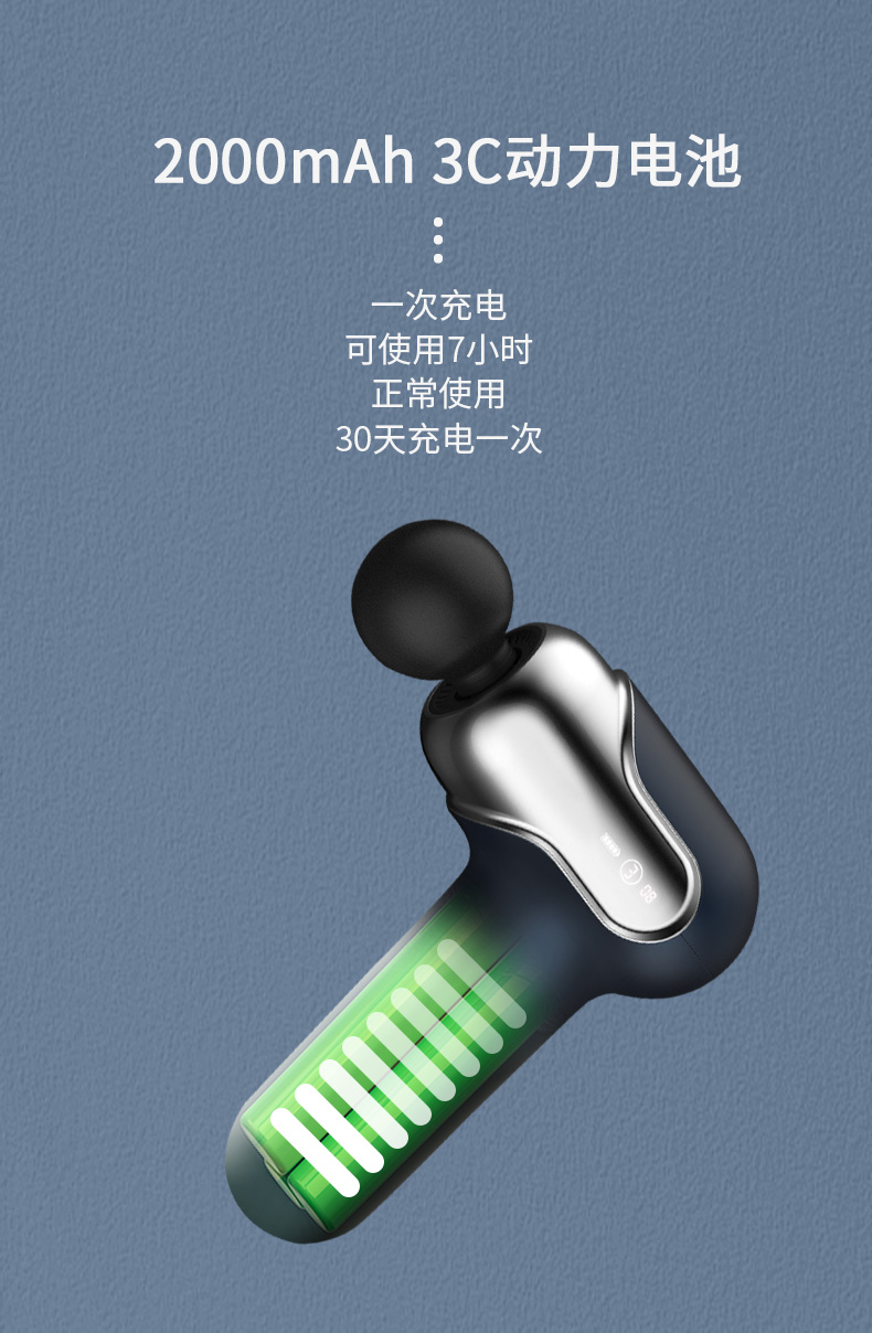 2. 開機后短按功能鍵,調(diào)節(jié)強度,可6擋循環(huán)調(diào)節(jié);