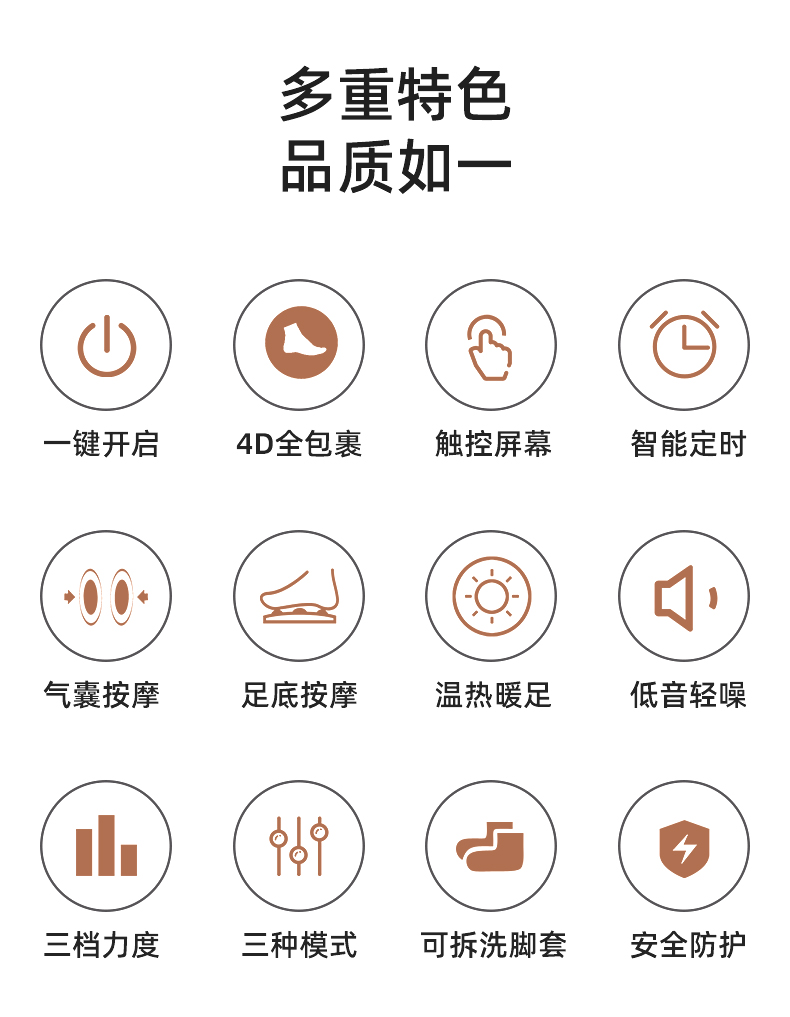 5個觸摸按鈕(安全氣囊,模式選擇,開關(guān),氣壓,熱敷);